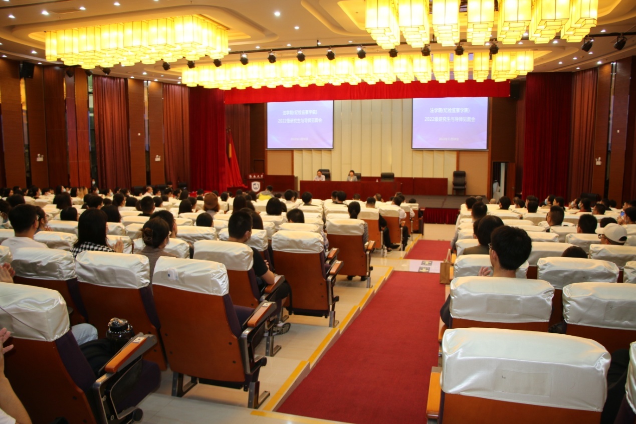 2022年11月8日下午16:30,太阳成集团tyc122ccvip在社科楼二楼报告厅举行2022级研究生与导师见面会。太阳成集团tyc122ccvip全体院领导、全院研究生导师、研究生办、法硕办等科室负责人和2022级全体研究生新生出席本次见面会。见面会由公司副经理阎二鹏主持。