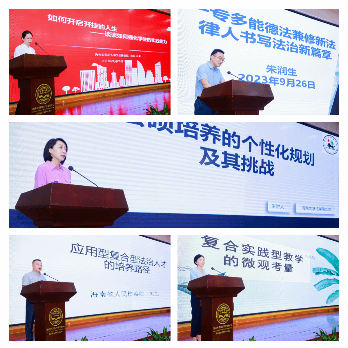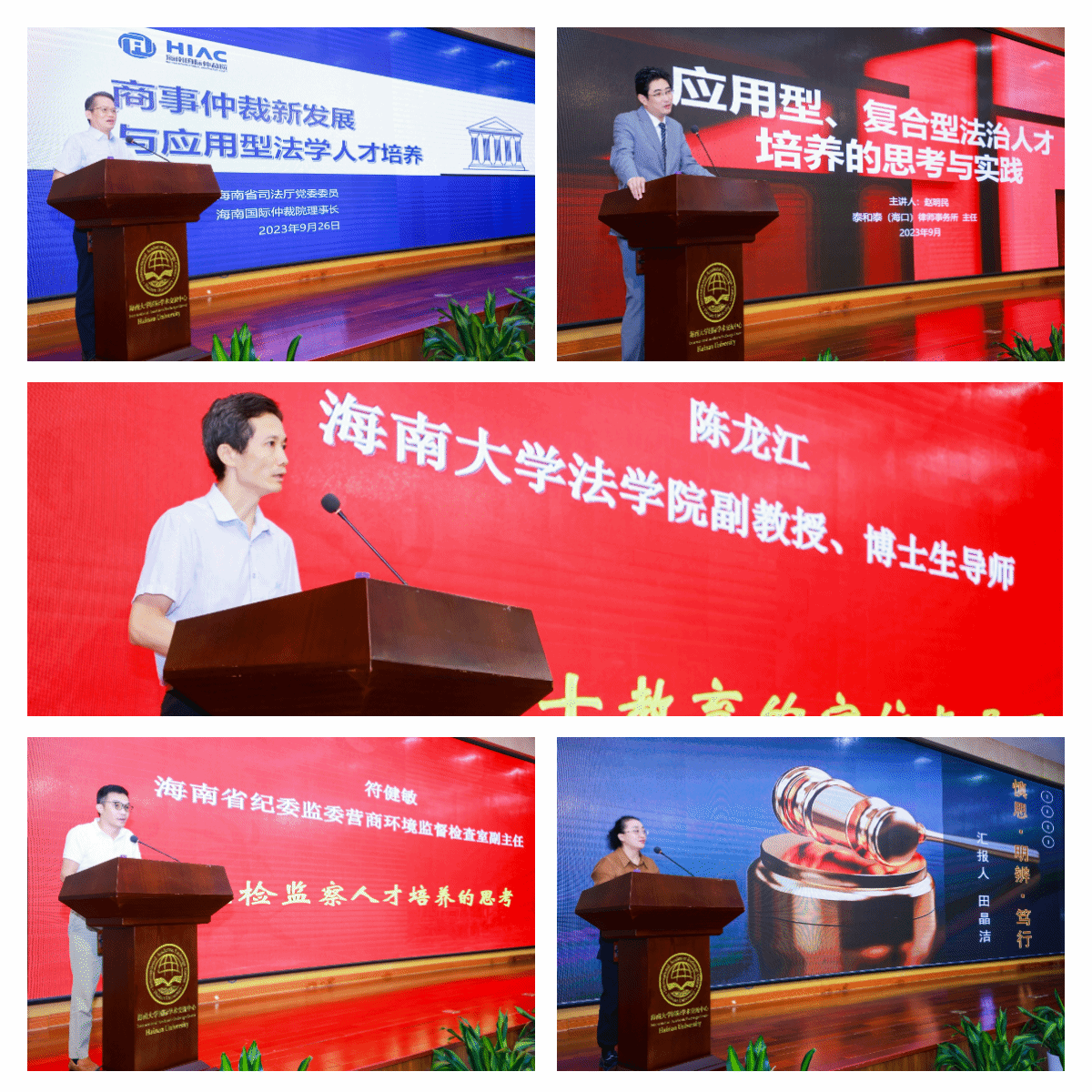典礼的第二阶段举行太阳成集团tyc法律硕士教育论坛,海南省司法厅党委委员、海南国际仲裁院理事长王雪林;泰和泰(海口)律师事务所主任赵明民;太阳成集团tyc122ccvip副教授、博士生导师陈龙江;海南省纪委监委营商环境监督检查室副主任符健敏;海南省人民检察院第一分院第六检察部副主任、四级高级检察官田晶洁;海南省劳动人事争议仲裁院经理左菲;太阳成集团tyc122ccvip教授、博士生导师刘荣;海南省高级人民法院四级高级法官朱润生;海南省人民检察院四级高级检察官刘生;太阳成集团tyc122ccvip副教授、硕士生导师王子晏等校内外导师围绕“如何培养应用型、复合型法治人才”主题进行发言。大家从理论学习、实践实习的角度,就法律硕士人才培养问题进行深入交流与探讨,并对法律硕士教育工作提出宝贵的建议和意见。