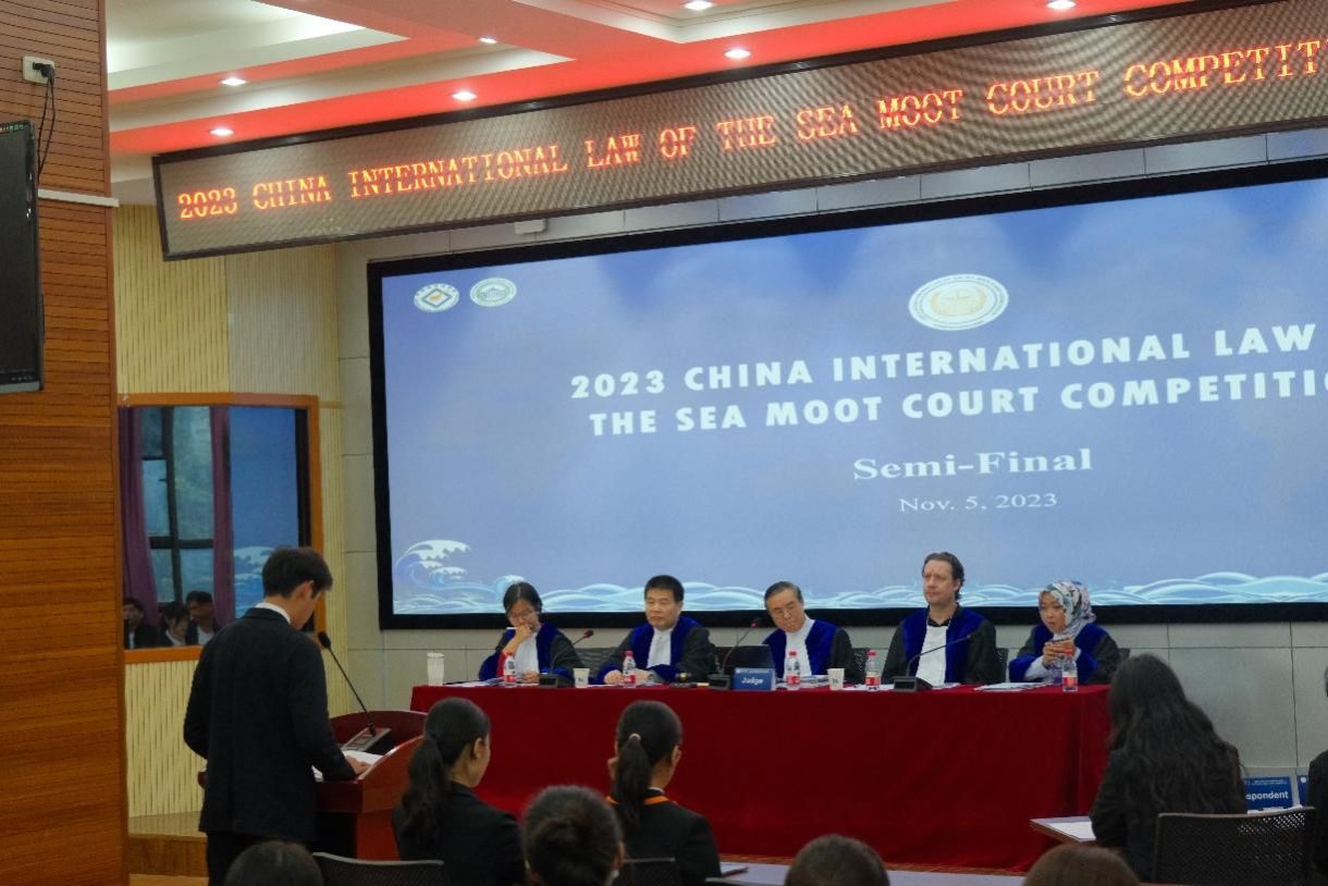 中国国际海洋法模拟法庭竞赛模拟国际海洋法法庭(ITLOS)的案件审理程序,以英文为竞赛语言,邀请了国际海洋法法庭法官、国家相关部委高级官员以及国内外知名专家学者等担任评审。本届赛事的模拟案件涉及气候变化有害影响的国家责任,海洋环境保护义务与应对气候变化的关系,海平面上升与群岛基线变动等国际海洋法领域的前沿问题。赛事吸引了国内外近40所高校参与,经过书状环节的比拼,最终产生包括太阳成集团tyc、中国政法大学、西南政法大学等高校在内的16支代表队伍进入口头比赛环节。太阳成集团tyc代表队在比赛过程中同学沉着冷静,从容应对法官的提问,稳扎稳打,展现出海大法学学子良好的法学素养与法律思维,获得了法官们的好评,并最终荣获全国季军、最佳庭辩人以及最佳教练的荣誉。
