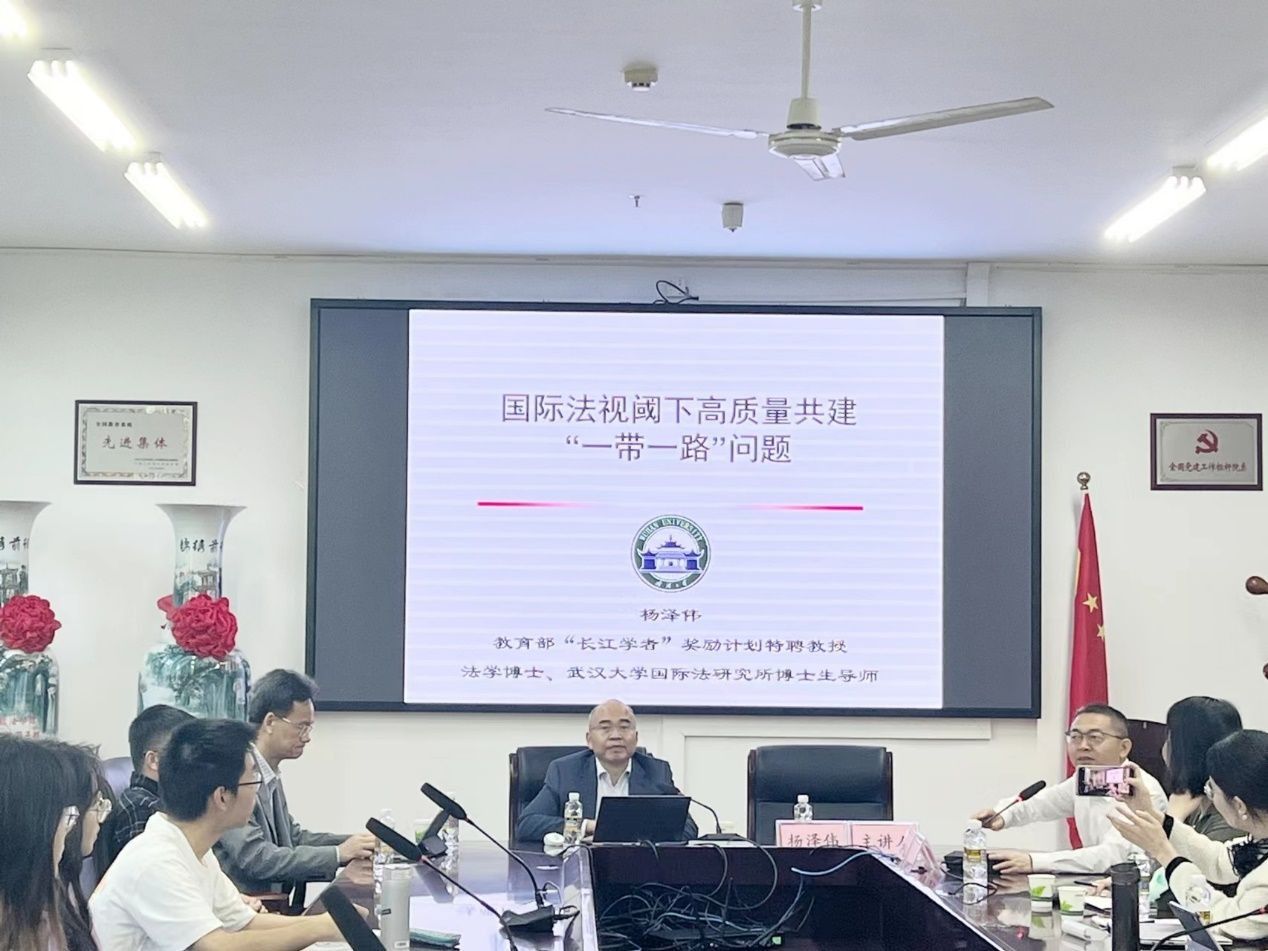 为扩大学科间的学术交流和营造浓厚的学术氛围,公司于2023年11月19日举办了第三次“名师面对面”系列讲坛活动。本次讲坛邀请了教育部人文社科重点研究基地武汉大学国际法研究所副所长、博士生导师杨泽伟教授担任主讲人,主讲题目为“国际法视域下高质量共建‘一带一路’问题”,讲坛活动由太阳成集团tyc122ccvip副经理邓和军教授主持。太阳成集团tyc122ccvip经理王琦及公司师生代表共同参与此次活动。