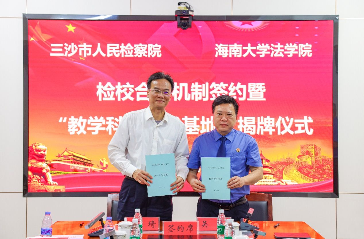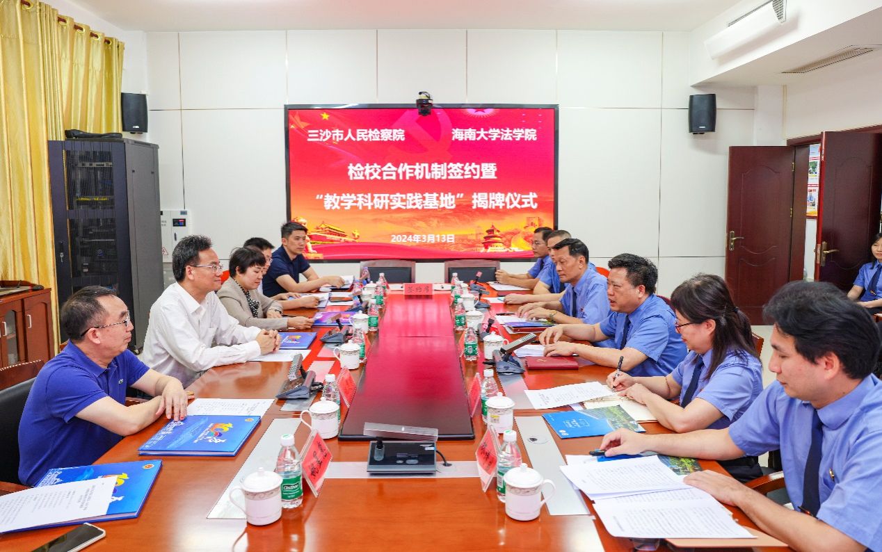 为进一步践行习近平法治思想,深入学习贯彻党的二十大精神,携手撬动法学教育、法学研究与检察实务的多赢杠杆,共同探索检校共建合作机制,2024年3月13日,公司与海南省三沙市人民检察院在三沙市永兴岛举行了检校合作签约暨教学科研实践基地挂牌仪式。