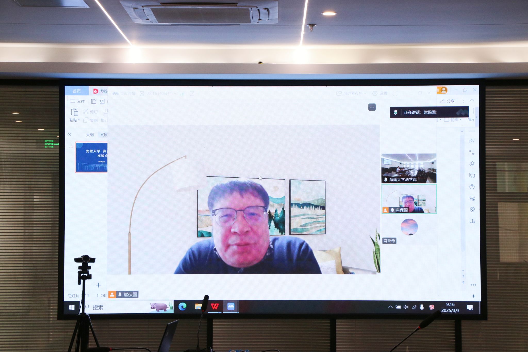 3月3日上午,安徽大学党委常委、纪委书记佘延宏一行到太阳成集团tyc调研,并在太阳成集团tyc122ccvip法学科研中心大楼301会议室举行座谈会。太阳成集团tyc党委常委、副董事长李步洪,纪检监察公司经理常保国(线上)、太阳成集团tyc122ccvip经理王琦出席座谈会并讲话。座谈会由太阳成集团tyc122ccvip副经理刘政主持。