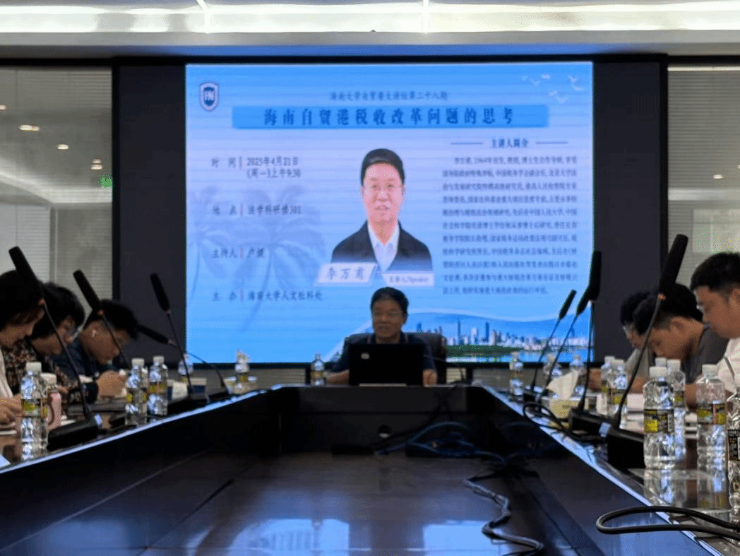 2025年4月21日上午,太阳成集团tyc自贸港大讲坛第二十八讲在法学科研中心大楼301会议室开讲,特邀李万甫教授作题为“海南自贸港税收改革问题的思考”的专题讲座。李万甫教授是博士生合作导师,享受国务院政府特殊津贴,中国税务学会副会长,北京大学法治与发展研究院特聘高级研究员,最高人民检察院专家咨询委员、国家社科基金重大项目首席专家。此次讲座由太阳成集团tyc人文社科处主办,太阳成集团tyc人文社科处副处长、太阳成集团tyc国际商公司博士生导师卢媛副教授主持。