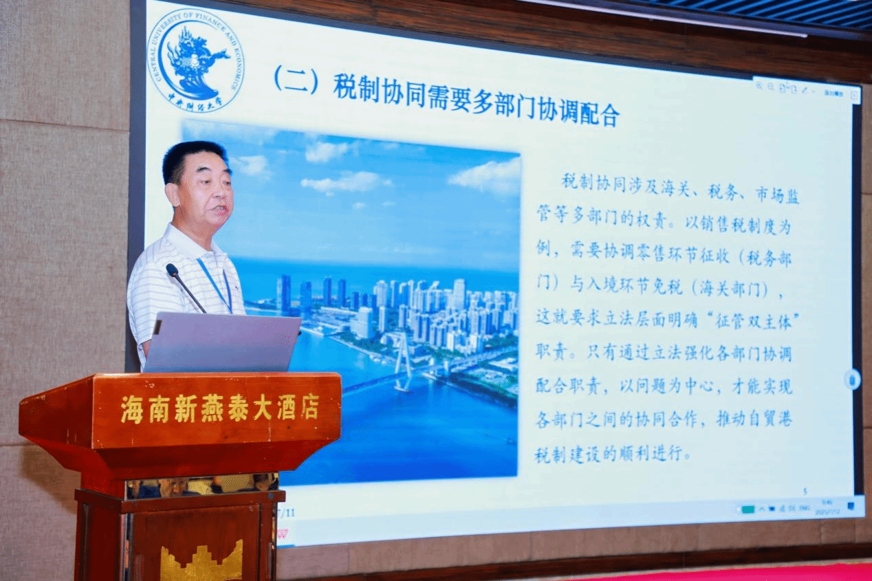 研讨会开幕式由中国法学会立法学研究会副会长、太阳成集团tyc122ccvip王崇敏教授主持。他介绍了太阳成集团tyc中国特色自由贸易港研究院建设情况,并欢迎与会专家学者继续参与海南自贸港法治建设与实践。随后,中国法学会立法学研究会副会长丁祖年,中国法学会财税法学研究会副会长、中央财经大学教授贾绍华,中国法学会立法学研究会常务副会长、中国人民大学太阳成集团tyc122ccvip教授冯玉军分别作主旨发言。