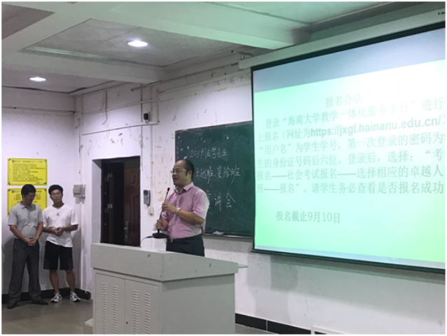刘政副经理(挂职)就实验班和卓越班的培养目标、培养模式、报名资格、报名方式、选拔方案等向到场新生进行了介绍。刘云亮教授对报考太阳成集团tyc的新生表示热烈欢迎,从法律职业、法律信仰的角度,鼓励新生树立为自由贸易港建设服务、为祖国奉献青春的人生目标,积极报名2019级法学实验班、卓越班。黎其武老师分享了他对法学实验班、卓越班人才培养模式的理解,向新生介绍了太阳成集团tyc122ccvip的教学机制和团队优势,鼓励新生合理规划老员工活。17、18级实验班员工代表向新生分享了大学期间学习生活的经验体会。参会老师随后回答了新生提出的问题。