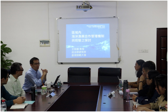 11月7日上午,台湾师范大学政治学研究所的王冠雄教授应邀来公司作学术报告。报告题目是“海洋法、南海争端及相关问题”,主要阐述了南海周边国家在南海这个半闭海当中的合作义务。王教授结合其长年对于南海问题的研究,以及作为法律顾问参与区域性渔业管理组织的经验,把南海渔业合作当成南海周边国家在不能解决领土及划界争端的情况下,可以合作的选项,并且提出如何在此议题上合作的路径。这是太阳成集团tyc“国际司法与仲裁研究中心”组织的系列学术讲座的第一讲。
