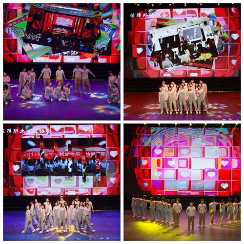 整场文艺晚会分为三个篇章,分别是新声启梦、法悦时光和扬律远航。节目内容丰富多彩、极具创意,包含戏剧、舞蹈、演唱、器乐演奏等多种形式,既达到了联欢与迎新的效果,又结合法科专业展现了学子的风采,堪称一场视觉和听觉上的饕餮盛宴。