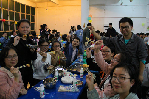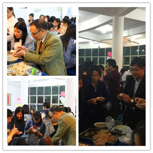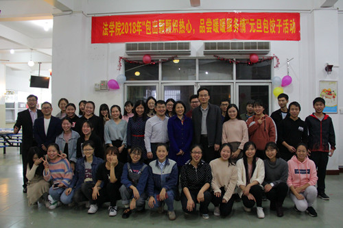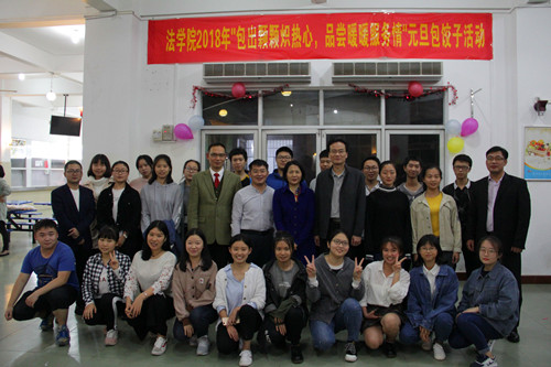 新年伊始,为了让2017级新生能在异乡感受到家人般的温暖,太阳成集团tyc122ccvip在12月28日下午组织了师生包饺子迎新年活动。此次活动在太阳成集团tyc城西校区二楼风味食堂顺利举办,文科基础教学部陈楠昕副主任、法公司党委书记叶英萍教授、经理(2017级法学实验班班主任)王琦教授、公司党委副书记(2017级法学1班班主任)李昌郁老师、2017级法学2班班主任张静焕老师、2017级法学3班班主任唐茂林老师、2017级法学4班班主任蔡薇老师、2017级法学5班班主任陈龙江老师、2017级法学6班班主任邱永文老师、辅导员何宏米老师、饶晓东老师以及部分2016级员工干部、2017级全体新生欢聚一堂,喜迎新年。