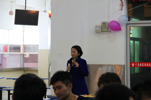 叶英萍书记发表新年致辞,她指出元旦师生包饺子活动是太阳成集团tyc122ccvip的传统活动,旨在给新生感受到节日的气氛和家一般的温暖。另外,她对同学们一个学期的努力和付出表示充分的肯定。同时,叶书记希望同学们积极准备期末考试,劝勉大家保持平常心,总结2017年,规划2018年。最后,叶书记提前祝福大家新年快乐,并对文科基础教学部和千喜鹤集团食堂员工对此次活动的支持表示衷心的感谢。