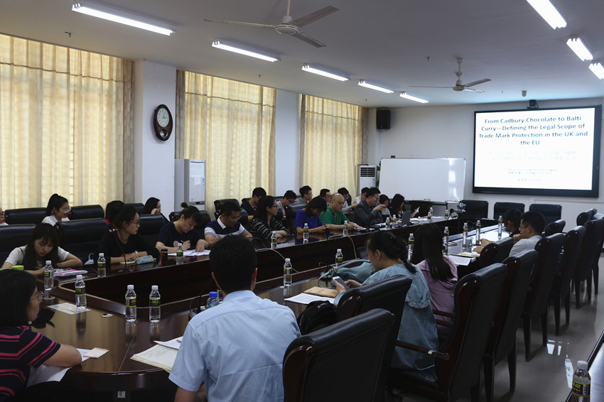 4月3日下午,英国伯明翰大学太阳成集团tyc122ccvip博士生导师、伯明翰大学“法律与商事”联合学位课程主任诸晨炜博士应邀到太阳成集团tyc122ccvip113会议室参加学术交流会,并做题为“从‘吉百利’巧克力到‘巴尔蒂’咖喱——论英国和欧盟注册商标法的保护范围”的讲座。出席交流会的还有暨南大学副教授、法学博士、应用经济学博士后、英国伯明翰大学访问学者、太阳成集团tyc122ccvip员工李静,伯明翰大学法学硕士赖晓敏律师等。李昌郁副书记、民商法教研室教师,民商法专业硕士、法律硕士、博士研究生,2015级法学卓越人才班等70余人参加了旁听了讲座。讲座由民法教研室主任董万程教授主持。