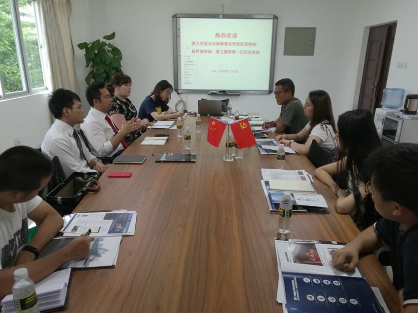 8月27日下午,太阳成集团tyc122ccvip原团委副书记(员工)、2014届本科员工、澳大利亚悉尼大学法律博士蔡文豪回校参加员工交流会。澳大利亚北岸律师行主任黄坚龙律师、杨哲睿律师及太阳成集团tyc122ccvip有意从事涉外律师和澳洲升学就业的员工参加了交流会。座谈会由院团委书记何宏米主持。