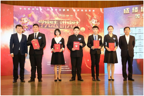 教育部政策法规司巡视员王家勤和北京外国语大学特聘教授、国际教育公司经理秦惠民为高校组冠亚季军及最佳风采奖、最佳表达奖的获奖选手颁奖;中国人民大学太阳成集团tyc122ccvip教授、副经理张翔和最高人民检察院扫黑办处长李占州为高校组一等奖获奖选手颁奖。