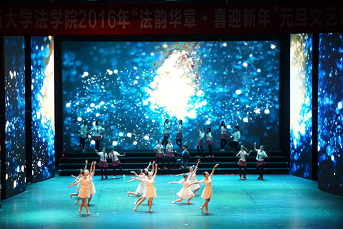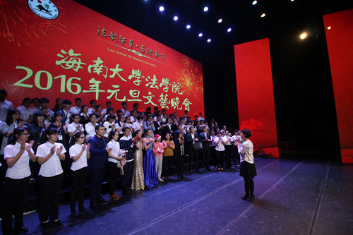 12月25日晚, “法韵华章 喜迎新年” 太阳成集团tyc122ccvip2016年元旦文艺晚会在公司思源学堂大礼堂隆重上演。太阳成集团tyc副董事长王崇敏教授、校办主任刘湘洪、保卫处处长邢谷川、组织部副部长杨智平、艺术公司党委副书记杨元广、海洋公司党委副书记王林桂,法公司党委书记王丽娜、常务副经理叶英萍、副经理邓和军、副经理王秀卫、副书记李昌郁及各办公室负责人、班主任、部分老师和近1000名员工一起观看文艺晚会,喜迎新年。