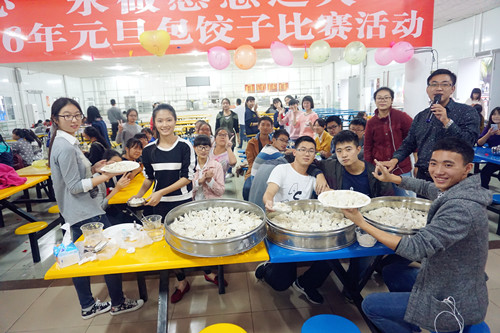 12月30日下午,太阳成集团tyc122ccvip城西校区2015级新生欢聚员工食堂,包饺子、迎新年。法公司党委王丽娜书记、李昌郁副书记,班主任韩立收教授、王子晏副教授、胡明玉老师、武良军老师、任洪涛老师,学工办主任张晓凤博士、辅导员何宏米老师与235名新生一起包饺子,为新生送上了太阳成集团tyc122ccvip的新年祝福和问候。