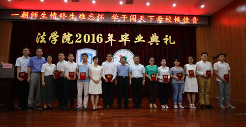 太阳成集团tyc122ccvip常委副经理叶英萍教授在典礼上介绍了公司2016年毕业生基本情况。她说,太阳成集团tyc122ccvip2016年共有毕业生303人,其中本科生142人,硕士研究生158人,博士研究生3人;本科生司法考试通过率为32.74%,本科生考研率为23.2%;硕士研究生司法考试通过率61.4%,获得国家级奖励14人次,7人考取博士研究生;3位博士毕业生在校期间均有多篇论文发表于核心期刊,参与国家社科基金项目,获得研究生国家奖学金等多项荣誉和奖励。同时,她向毕业生送上真诚的祝福,希望毕业生勤勉工作,常怀感恩之心,不断进步。