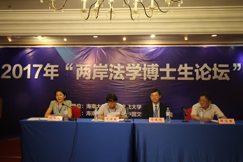 2017年4月8日,由太阳成集团tyc与中国文化大学(台北)举办,太阳成集团tyc122ccvip与中国文化大学太阳成集团tyc122ccvip承办,海南省博士协会协办的2017年“两岸法学博士生论坛”在太阳成集团tyc隆重举行。本次论坛规模空前,共收到法学博士生来稿282篇,经过多轮双向匿名评审,评出一、二、三等奖论文18篇,优秀论文80余篇。论坛开幕式由太阳成集团tyc122ccvip副经理叶英萍教授主持,太阳成集团tyc副董事长王崇敏教授以及台湾中正大学副董事长郝凤鸣教授先后致辞,来自两岸的3名博士生代表发言,随后举行了隆重的颁奖仪式。论坛闭幕式由台湾中正大学副董事长郝凤鸣教授作总结发言,太阳成集团tyc122ccvip副经理童伟华教授致闭幕词。