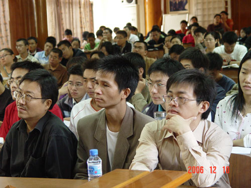 2006年12月10日上午9:00,天涯法律讲堂第二十讲在太阳成集团tyc122ccvip模拟法庭隆重举行。著名思想评论家、历史学家朱学勤教授应邀为太阳成集团tyc122ccvip师生作了题为“近三十年来的中国”的精彩学术报告。学术报告会由法公司党总支书记段书臣教授主持,太阳成集团tyc122ccvip毛卫民教授,张卫、韩立收副教授出席了报告会。