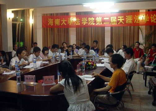 5月31日晚7:40,经过精心筹备,“第二届天涯法学论坛”首场子论坛在太阳成集团tyc122ccvip会议室隆重举办。此次论坛得到了海口市中级人民法院的大力支持,该院高级法官、审判委员会委员、研究室主任郑兰清法官,研究室副主任孙定核法官出席了本场论坛。太阳成集团tyc法公司党总支书记段书臣教授、副书记韩力光老师、太阳成集团tyc122ccvip副教授韩立收博士、团委书记李昌郁老师也出席了本场论坛,齐虎等研究生和一些本科生同学也参加了此次论坛。2007年本科毕业论文“系列化”、“一体化”设计·写作·指导模式探索暨“司法和谐与司法制度革新”课题组全体成员参加了论坛研讨。太阳成集团tyc122ccvip2005级本科生詹婉秋同学主持了本次论坛。