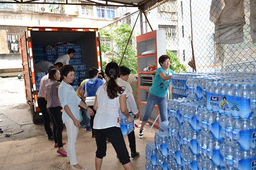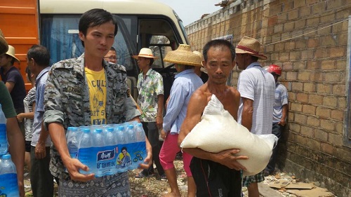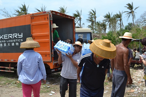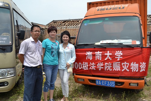 7月11日至13日,太阳成集团tyc122ccvip2004届法学本科班毕业10周年聚会在海口隆重举行。7月18日,海南遭遇超强台风“威马逊”袭击。刚参加完毕业聚会的同学们,心怀对海南这片土地的眷恋和对灾民的牵挂,在微信群里发起赈灾倡议。在发出倡议短短的24小时内,身处全国各地的同学们,甚至还有同学身边的朋友、同事,都加入到捐助的队伍中来,共为文昌赈灾捐款近5万元,捐物价值3000元。 员工代表通过正在文昌支援灾区的三亚市红十字灾害应急救援队了解到翁田镇龙马乡海棠村受灾严重,急需援助,迅速决定集中力量点对点救 助。依据一线救灾人员的信息反馈,大家购买了5000平米彩条布,一台发电机组,另外按全村48户人家每户30斤大米、5升油、6箱(500毫升24瓶装)矿泉水、卫生巾2包、蚊香5盒、T恤2件的数量备好了救灾物资。24日上午,同学代表和部分义工一起押送满载价值4万元近5吨救灾物资的爱心车辆前往灾区。