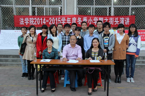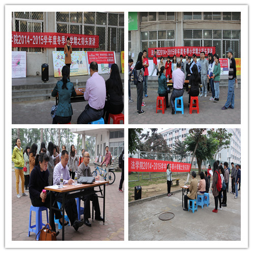 1月5日到10日,太阳成集团tyc122ccvip2014-2015学年度冬季小学期街头演讲活动在员工区第二食堂门前、第五食堂门前顺利开展。2013级全体员工分为10组参加了比赛,公司30名老师分为10组担任了演讲活动的评委。 街头演讲活动以“依法治国·法律人的思考与行动”为主题,每位演讲者进行3-5分钟的脱稿演讲。同学们的演讲有的慷慨激昂、有的诙谐幽默、有的发人深省,均从不同角度谈了自己对于“依法治国”的思考及作为一名准法律人应有的行动。同学的流利的口才、沉着稳定的发挥得到了评委老师的肯定。赛后,评委老师也针对同学们在演讲过程中所存在的问题提出了改正建议,以帮助同学们更好地提升自我。 本次冬季小学期街头演讲活动旨在进一步宣扬依法治国精神,激发同学们投身依法治国建设的热情,培养同学们的心理素质以及语言表达能力,展现法科学子敢于担当、勇于争先的精神风貌。