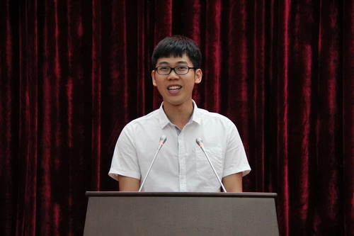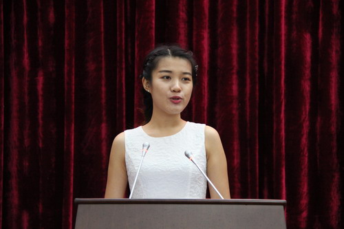 2012级本科生栾安琪代表在校员工发言。她对长久以来无私帮助自己的师兄师姐们表示感谢,并祝愿师兄师姐们前程似锦,一帆风顺。