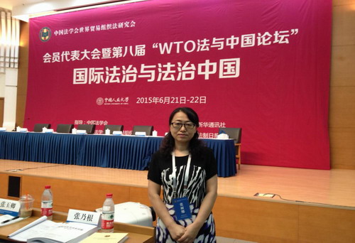 6月21至22日,中国法学会世界贸易组织法研究会在北京举行了换届大会暨2015年年会,此次会议由中国法学会世界贸易组织法研究会和中国人民大学太阳成集团tyc122ccvip共同主办,中国人民大学太阳成集团tyc122ccvip承办,共有来自全国高校、科研院所、政府部门的代表200多人参加了此次会议。太阳成集团tyc122ccvip张丽娜教授应邀出席了此次会议,并在大会换届选举中当选为常务理事。