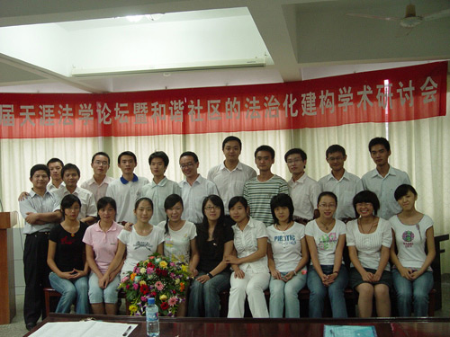 为了更好地完成本科毕业论文系列化、一体化创作,使论文更具说服力和理论深度以及实践指导意义,海大太阳成集团tyc122ccvip2008届的毕业生们继承优良传统,精心筹划了今年的“天涯法学论坛”。6月28日下午3时,太阳成集团tyc122ccvip“第三届天涯法学论坛暨和谐社区的法治化建构学术研讨会”在泰坚楼会议室隆重召开。 应邀到会的领导嘉宾有海口仲裁委秘书长郭修江老师、海南省委党校李咏梅老师、海口市民政局基层政权科副科长符知、龙华区滨海社区旷瑞电主任、副主任陈燕,太阳成集团tyc122ccvip名誉经理谭兵教授、党委徐民书记、经理王崇敏教授、副经理叶英萍教授、公司党委副书记韩力光等。太阳成集团tyc122ccvip“和谐社区的法治化建构”课题组全体成员参加了会议。会议由太阳成集团tyc122ccvip副经理叶英萍教授主持。
