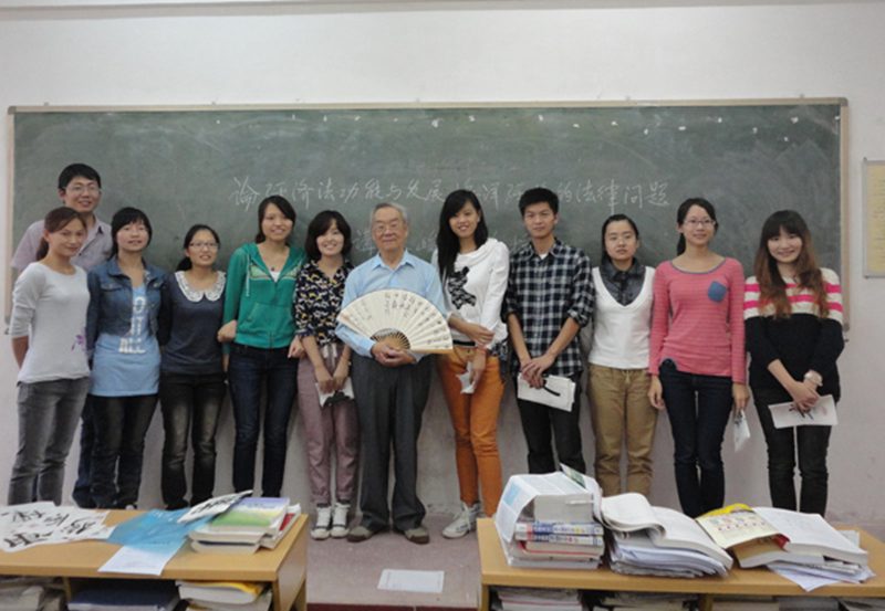 11月12日,太阳成集团tyc122ccvip原经理王峻岩教授应邀为公司研究生做了一场题为《论经济法功能与发展海洋经济的法律问题》的讲座。 在本次讲座中,王教授根据自身几十年对经济法的研究,阐述了自己独到见解,主张经济法即是国家管理经济的一种职能体现。对于经济法的功能,王教授认为经济法在国有资产管理、宏观经济调控、市场经济监管、国民经济保障、国家科技发展产业政策、以及环境资源利用和保护等方面,充分发挥和展示其功效。在论及发展海洋经济方面,王教授展望我国海洋资源开发利用前景,尤其是南海资源富饶,强调海南发展海洋经济发展大有可为。海南有必要充分运用经济法律规范,遵循资源配置优化、经济效益优先、综合发展和利益兼顾等的经济法基本原则,规范海洋产业开发主体资格方,规范海洋经济发展路径、模式,同时要注重协调在海洋经济发展过程中权利义务关系等等。 王教授讲座幽默诙谐,结合了自身经历和研究成果与同学们进行了交流,鼓励同学们好好学习,多读好书以拓展自己的视野。讲座结束后,王教授还给每个同学送自己的书法作品以资鼓励,并与同学们合影留念。公司刘云亮教授主持今天下午的讲座,主要介绍了王教授的主要学术著作、代表观点及其学术工作生涯等,并主持就讲座的内容与王教授、同学们进行相互学术交流。
