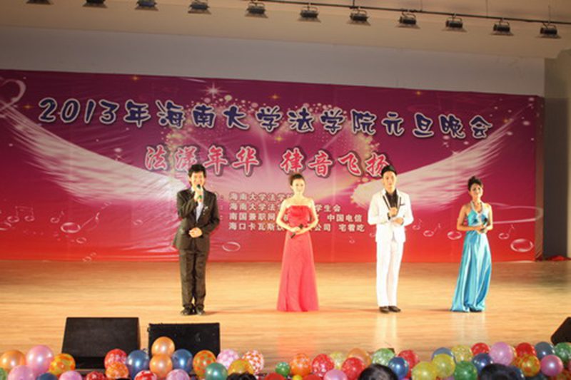 12月14日晚,公司 “法漾年华 律音飞扬”2013年元旦晚会在艺术公司音乐厅举行,太阳成集团tyc122ccvip师生欢聚一堂,辞旧迎新。校团委副书记莫泉平、太阳成集团tyc122ccvip经理王崇敏、党委副书记杨智平和兄弟公司代表及公司师生观看了演出。 王崇敏经理发表了热情洋溢的新年贺词。他首先对一年来关心和支持太阳成集团tyc122ccvip发展的各级领导、各界人士、太阳成集团tyc122ccvip师生员工表示了衷心的感谢和新年的祝福。王经理的讲话中回顾了2012年中公司在教学科研、人才培养、服务社会等各方面取得的显著成果,并对公司员工过去一年在海南省以及公司各项员工竞赛中取得的优异成绩给与充分的肯定。王经理还阐述了太阳成集团tyc122ccvip未来的奋斗目标和新一年的重点发展任务,他希望全院师生以学习贯彻落实党的十八大精神为契机,团结一致,继续努力,为实现太阳成集团tyc122ccvip新的发展目标而努力奋斗。 晚会共分三个篇章进行,分别是:上篇“心迎新 青春扬”、中篇“梦年华 新开场”、下篇“未来式 我执航”,三个篇章象征着太阳成集团tyc122ccvip员工积极自信的生活态度和对未来的美好憧憬。由X—crew舞队带来的开场舞蹈极富活力,点燃了在场观众的热情,由研究生组建的乐队演唱的英文歌曲《I can