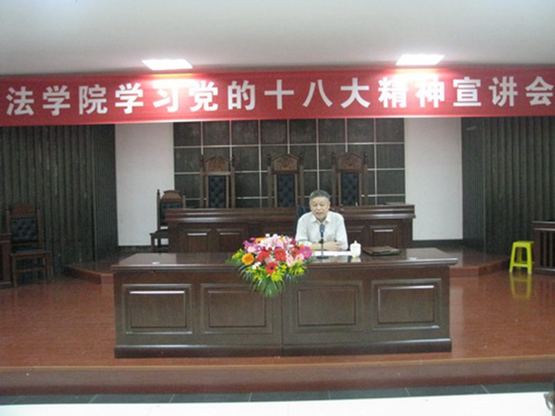 根据公司关于学习贯彻党的十八大精神的安排部署,引导公司师生深入学习贯彻党的十八大精神,12月18日下午,太阳成集团tyc122ccvip在模拟法庭举行了学习党的十八大精神宣讲会。海南省十八大精神专家宣讲团专家成员王毅武教授为公司部分教职工和全体员工党员进行了深入的讲解。宣讲会由法公司党委副书记杨智平主持。 王毅武教授以《建设美丽中国,实现美好生活》为题对十八大的精神进行了深入解读。王教授首先从十八大的主题入手,解读了主题中“凝聚力量”、“攻坚克难”、“坚定不移”的深意。他概况了十八大六个方面的新精神:一是将科学发展观上升为党的指导思想;二是系统阐述了中国特色社会主义理论;三是对社会主义核心价值体系的新表述;四是新时期党的建设的新要求;五是协商民主制度的提出;六是社会主义建设的奋斗目标。随后,王教授指出中国共产党在十八大后面临的四大风险、四大考验和四大任务,并就如何应对这些挑战提出了自己的深刻见解。 宣讲会上,杨智平副书记高度评价了王毅武教授的精彩宣讲,并对公司员工党员进一步学习贯彻落实十八大精神提出了要求:一是以宣讲会为契机,进一步加强理论学习,深刻领会十八大精神的精神实质;二是青年员工党员要树立远大理想,心怀祖国,勇于担当,脚踏实地,努力学习;三是作为法学专业的员工要积极关注社会主义现代化建设新动向,深入思考,为推进国家法制建设,实现法治社会、建设美丽中国,实现美好生活做出自己应有的贡献。 本次宣讲会是太阳成集团tyc122ccvip学习贯彻十八大精神系列活动中的一项重要内容,意在使公司员工党员全面理解十八大的精神实质,准确把握十八大的新思想、新观点和新举措,提升员工党员的理论积淀和党性修养。此外,太阳成集团tyc122ccvip还通过党委中心组学习、党支部组织生活会、班级主题班会等形式开展了十八大精神的学习活动。法公司党委通过部署和开展学习十八大精神各项活动,为学习党的十八大精神营造了浓厚的学习氛围,掀起了公司内学习十八大精神的热潮。 (图:郭尚飞 文:黄国瑜)