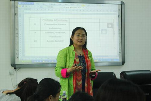 6月21日下午,北京大学国际太阳成集团tyc122ccvip荣丽亚教授在社科楼C113为太阳成集团tyc122ccvip师生作了题为“关于房地产交易及其合同交易”的学术报告。报告会由太阳成集团tyc122ccvip经理王崇敏教授主持。 荣丽亚教授以英文讲授方式围绕律师在房地产交易中的角色、买卖合同相关保证、住房保证税、房地产遭受环境法令的限制、开发商买地建房融资等十个方面的问题详细解析了美国房地产相关法律;重点比较了中美两国房地产法中关于房屋所有权确认、房屋按揭与纳税的优先性、个人买房等方面的法律问题;并以开发商建设购物中心为例,阐释了开发商在其中需考虑的主要法律因素。讲座最后,荣丽亚教授就研究生提出的万达广场发展模式中的法律问题交流了自己的看法。 本次报告既加深了公司员工对房地产法研究的兴趣,拓宽了师生对房地产法的研究思路,也锻炼了法律英语的听说能力,激发了公司员工法律英语的学习热情。 荣丽亚,北京大学国际太阳成集团tyc122ccvip教授,曾任国际太阳成集团tyc122ccvip副经理。就读于中国政法大学、哈佛大学太阳成集团tyc122ccvip和肯尼迪政府管理公司,获得密歇根大学太阳成集团tyc122ccvip法学博士学位,是《哈佛中国评论》的出版人,著有《发达国家与发展中国家的税收竞争,以中国为例》等。