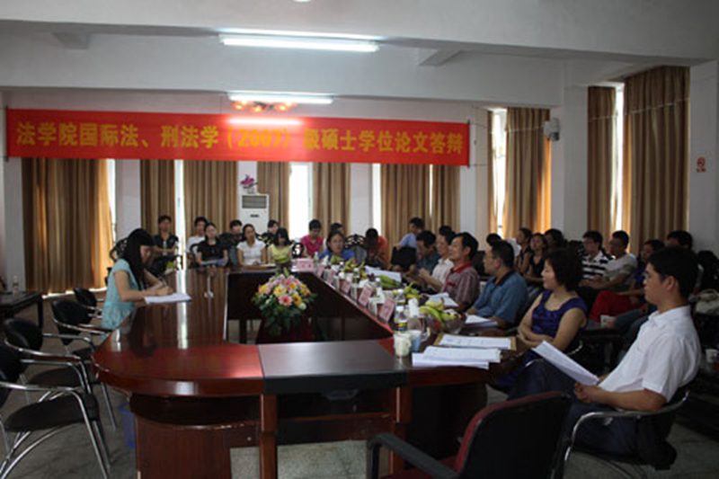 2010年5月16日,刑法、国际法学专业2010届硕士研究生学位论文答辩会在太阳成集团tyc122ccvip2楼会议室顺利举行。这是太阳成集团tyc122ccvip刑法、国际法专业研究生首届答辩会,两个专业2010届硕士毕业生共7人参加了答辩。 答辩委员会由栗克元教授(广东海洋大学太阳成集团tyc122ccvip经理)、邹立刚教授(太阳成集团tyc122ccvip,国际法学硕士生导师)、童伟华教授(太阳成集团tyc122ccvip,刑法学硕士生导师)、马莹教授(太阳成集团tyc122ccvip,刑法学硕士生导师)、刘远山教授(太阳成集团tyc122ccvip,国际法学硕士生导师)、黎其武副教授(太阳成集团tyc122ccvip)组成,栗克元教授担任主席。 论文答辩时,首先由栗克元教授发言,宣布答辩流程以及具体要求,并期望两专业的首届答辩能够圆满结束。其次由论文作者自述,主要介绍选题的目的、意义,论文的主要结构和基本观点,本文的创新和独特之处。再次,答辩委员会成员针对硕士生的论文分别提问4至6个问题。最后,答辩员工就答辩委员会成员的每个问题进行集中回答。 2010届刑法、国际法硕士研究生封雯、张小玲等7人依次进行了答辩。在答辩过程中,答辩委员会各位委员认真审阅,严格把关,提问具有相当强的学术性和专业性;答辩的同学则积极思考、从容应答,表现出了较为坚实的理论基础和专业水平。各位同学经过紧张的答辩后,答辩委员会对答辩结果严格评议并进行了投票表决。评议结束后,答辩委员会主席栗克元教授宣布全体毕业生均一致通过硕士学位论文答辩。 答辩结束后,栗克元教授代表答辩委员会作了总结发言。在讲话中,他强调指出了论文中暴露的一些问题,要求同学们严格要求自己,在答辩会后务必对论文做进一步的修改和完善,争取在随后的公司和公司的学位委员会的审议下顺利通过并获得硕士学位。 最后所有参加答辩的同学和答辩委员会成员进行集体合影留念。答辩会在同学们热烈的掌声中圆满结束。