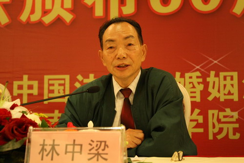 中国法学会党组成员、秘书长林中梁教授高度评价了过去一年中国婚姻法学研究会对中国法学作出的巨大贡献,代表中国法学会向中国婚姻法研究会2010年年会及婚姻法60周年纪念会的召开表示祝贺。他表示,婚姻法研究会大力宣传了现代中国婚姻家庭应有的价值观念,对推进婚姻法学研究的发展起到了积极的作用。他要求婚姻法学研究会认真学习领悟党的十七届五中全会的精神,全面总结过去60年婚姻法发展变化的经验,为构建和谐婚姻家庭作出应有的贡献。