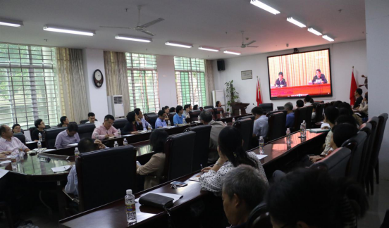 最后,与会教职工共同观看了《学习贯彻党的十九届五中全会精神中央宣讲团首场报告会》的录像视频。