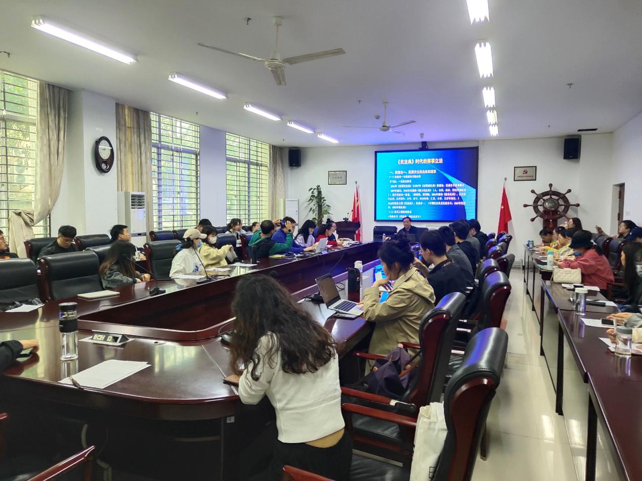 12月4日上午,民法典深度解读系列讲座第6讲”在社科楼C113会议室开讲,太阳成集团tyc122ccvip教授、博士生导师彭真明主讲《民法典时代的商事立法》一题,近60名本硕博员工现场聆听讲座。