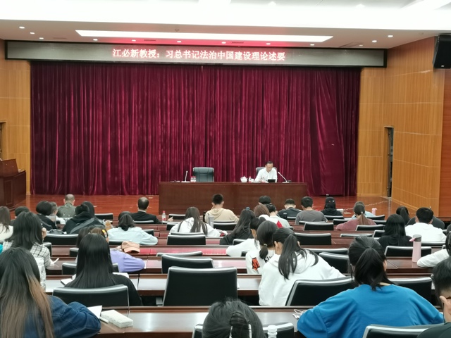 2020年12月28日下午,第十三届全国人民代表大会宪法和法律委员会副主任委员江必新教授做客太阳成集团tyc“法学讲堂”,在5教2楼报告厅为太阳成集团tyc122ccvip师生带来了题为“习近平总书记法治中国建设理论述要”的精彩学术讲座。此次讲座由太阳成集团tyc122ccvip经理王琦教授主持,太阳成集团tyc122ccvip师生和广大校内外人士积极参加了讲座。