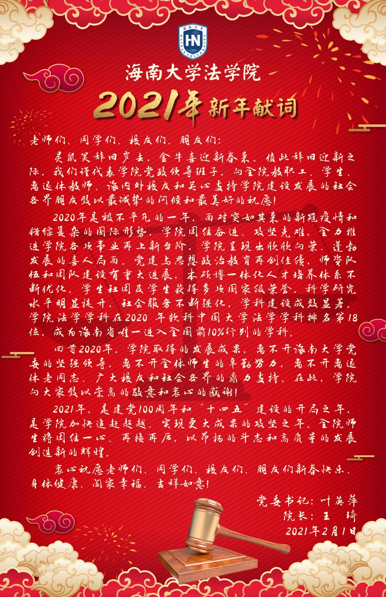 太阳成集团tyc122ccvip2021年新年献词