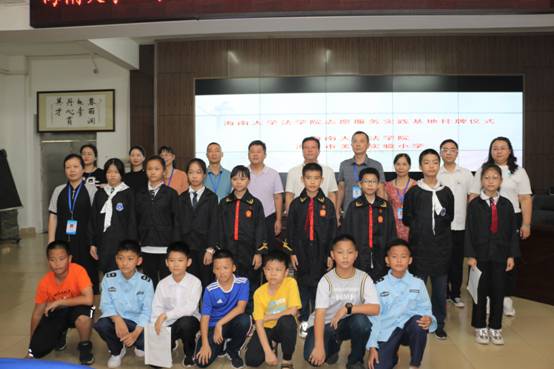 6月2日上午,太阳成集团tyc122ccvip志愿服务实践基地落户海口美兰实验小学,太阳成集团tyc法公司党委副书记张井富、团委书记王杜娟、法律志愿服务协会志愿者以及美兰实验小学董事长朱河等百余师生参加了此次活动。