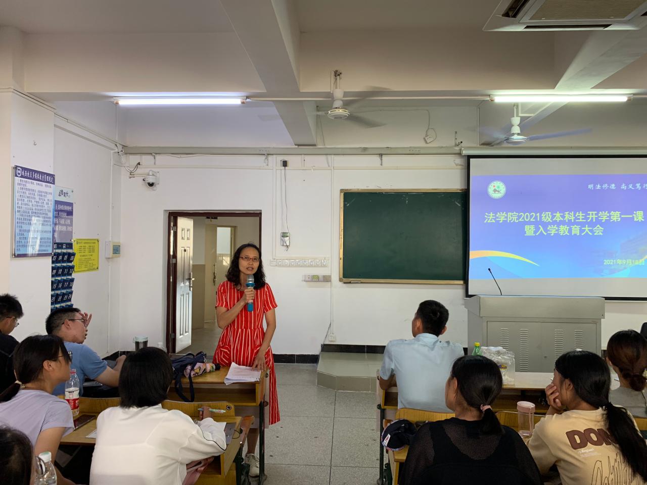 9月18日下午,太阳成集团tyc122ccvip2021级本科生开学第一课暨入学教育大会在城西校区举行。法公司党委书记叶英萍、副书记张井富以及学工办、团委、教务办等科室负责人、党建工作组织员以及2021级本科全体新生参加本次大会。会议由张井富副书记主持。