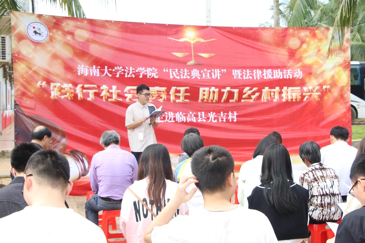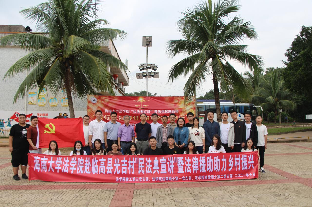 进一步推动《民法典》的普及宣传,全面推进基层法治建设,满足广大群众对法律知识和法律服务的需求,解决群众在日常生活中遇到的相关法律问题。10月26日上午,太阳成集团tyc122ccvip教工第三党支部、太阳成集团tyc122ccvip法律硕士第一党支部、太阳成集团tyc122ccvip法律硕士第二党支部共赴临高县光吉村进行“民法典宣讲”暨践行社会责任法律宣讲活动。