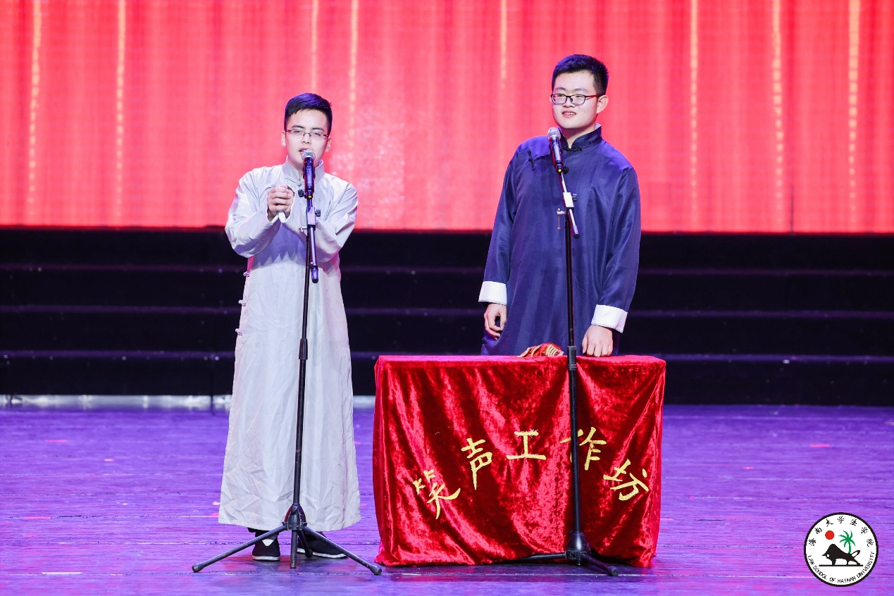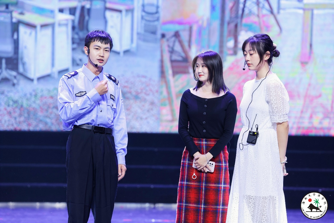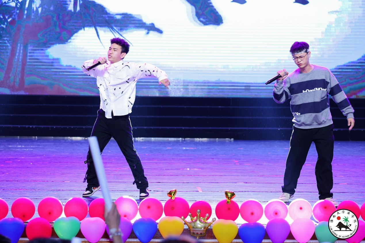 晚会分为上下两个篇章。由2019级法学1班马杰和2019级法学文科实验班舒赐雯为大家献上原创歌曲《霓虹派对》,充满活力的演唱让大家感受到了初恋中的怦然心动;太阳成集团tyc122ccvip工会选送的教师节目《书简舞》让大家看到了老师们不只在三尺讲台显风采,在舞蹈中也是柔美四溢。2020级法学1班带来了防电信诈骗情景剧《郝单纯》,让大家在剧中感受到了电信欺诈手段的多样性,也给在场所有人提出了防诈小妙招;2020级法律(非法学)班的陈露一首轻快的俄罗斯小调《达尼亚》,让在场的观众都陶醉其中;一曲《大鱼海棠》,又把我们带回到最初的相遇;舞蹈串烧《触摸天空》让大家都感受到了年轻和活动,感受到了梦想和热爱。2019级本科生和2020级本科生的舞蹈《Cleopatra》动感十足、热情洋溢,将晚会又拉向了高潮;笑声工作访《今夜说相声》也引来现场笑声连连;由2020级法学3班带来的军装舞蹈《给青春理一个短头发》又激起了无数“红妆”女孩的军营梦想;由太阳成集团tyc122ccvip员工党员联合会、2021级法律(法学)班出演的舞台剧《破晓》让大家身临其境,穿越时空感受到了青年的热血和勇气;由2019级法学1班“双马尾”马杰、陈刘炜带来的说唱歌曲《沧海一声笑》激情澎湃,将晚会又推向了一阵高潮,现场欢呼不断。