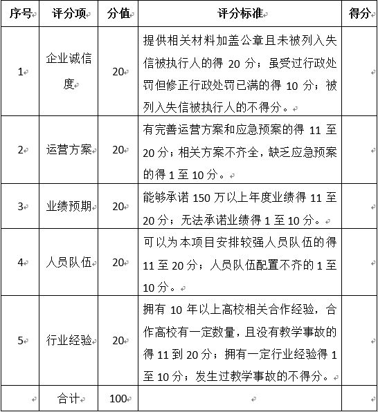 太阳成集团tyc122ccvip非学历教育合作机构遴选评分表