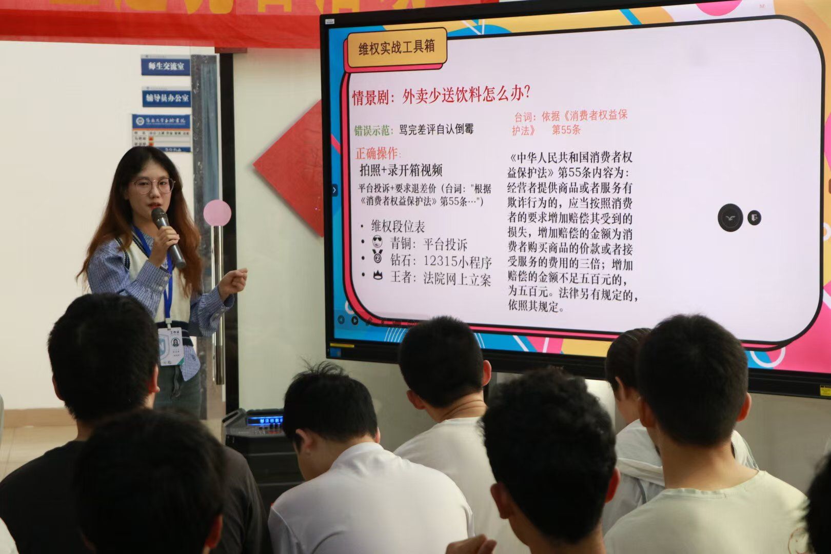 本次活动以普法宣讲拉开帷幕。宣讲伊始,青法员工邓芷妍以一道趣味题——“外卖少送饮料怎么办?”打破现场的拘谨 ,引入“消费者权利说明书”环节,结合实例把消费者的九大权利细细剖析,帮助员工轻松辨别侵权行为,夯实维权知识基础。