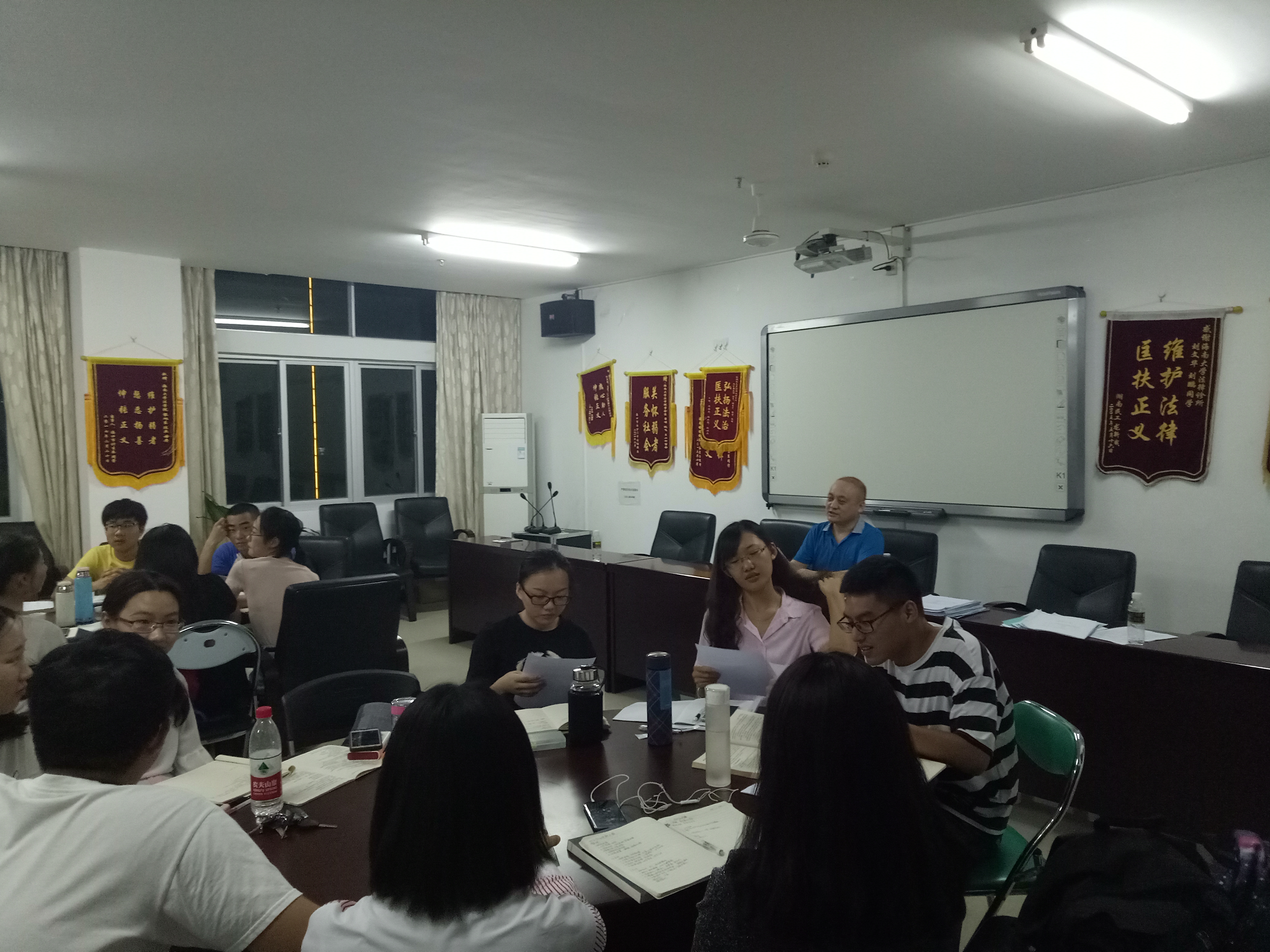 2018年5月15日晚,太阳成集团tyc122ccvip法律诊所第27期全体学员在社科楼C619会议室听董万程老师讲解关于谈判与调解的技巧。